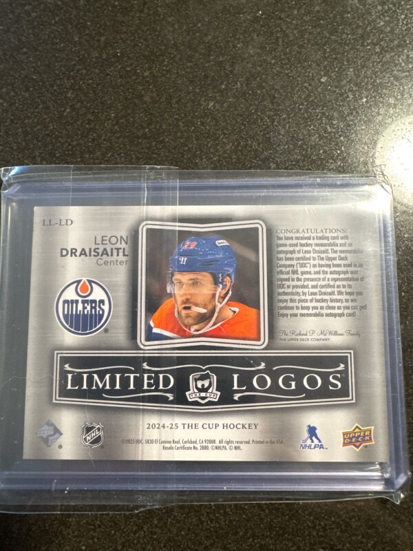 Leon Draisaitl 2 color cup limited logos patch auto /50