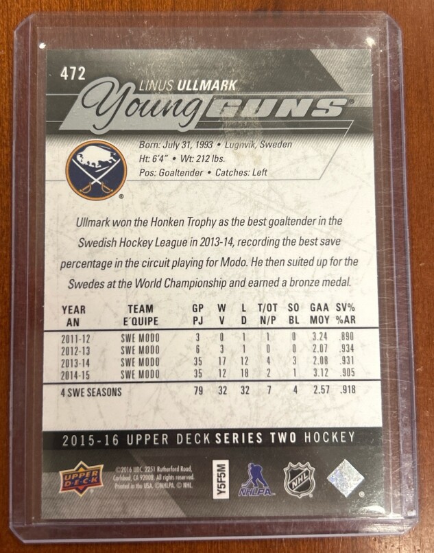 Linus Ullmark Young Guns