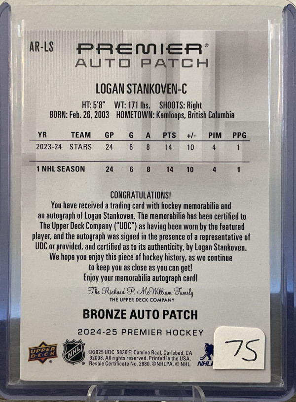 2024-25 Upper Deck Premier Bronze Auto Patch 87/99