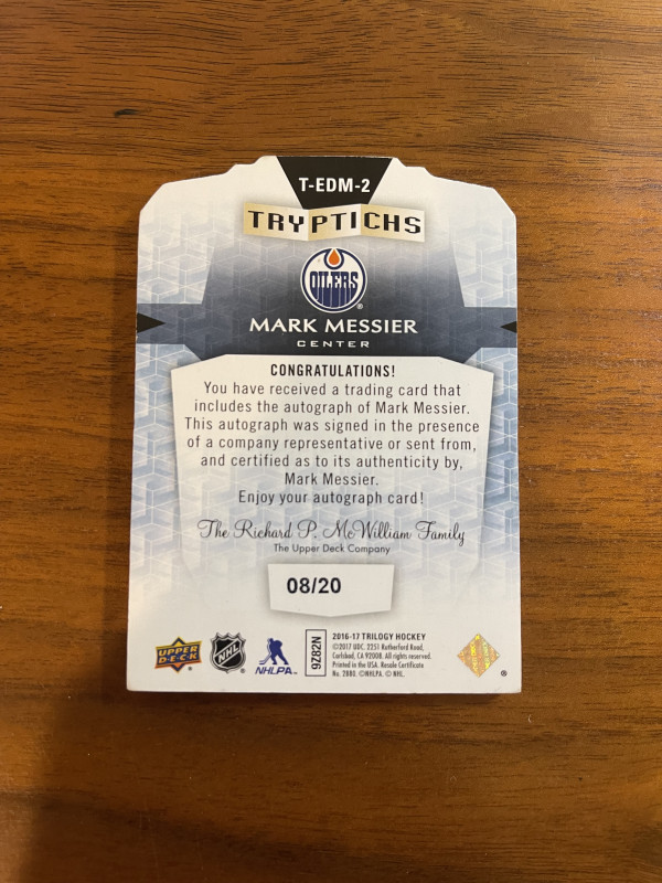 MARK MESSIER - 2016 Upper Deck Trilogy Tryptichs Auto #T-EDM-2, /20
