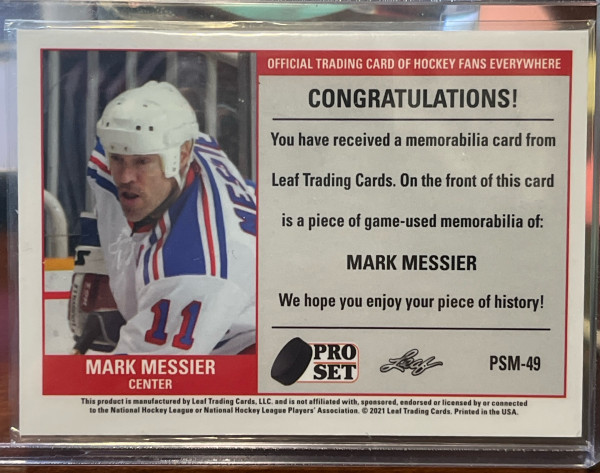 Mark Messier 2021 Pro Set GAME USED Jersey patch card. #PSM-49