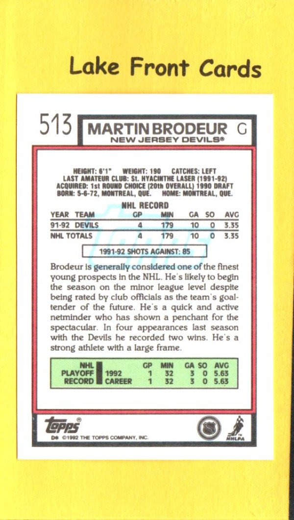 Martin Brodeur #513 – 1992 Topps