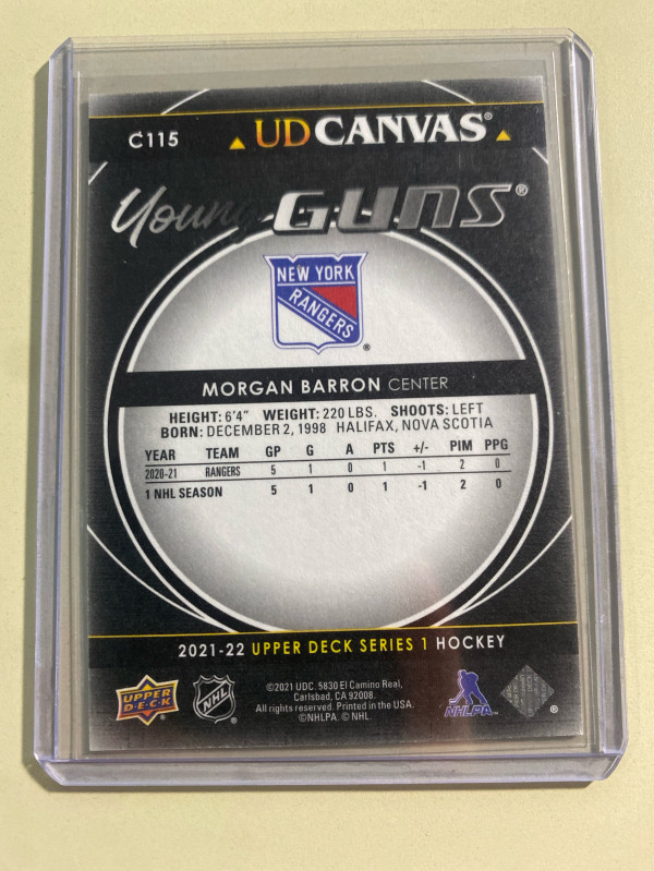 Morgan Barron 21-22 UD S1 Young Guns Canvas Black