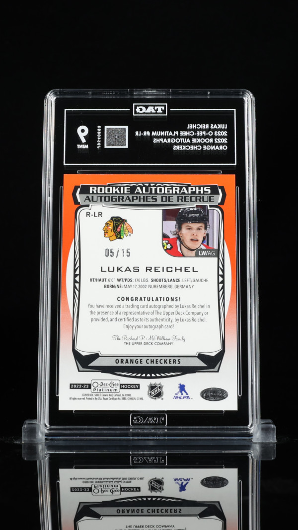 You are purchasing a O-Pee-Chee Platinum Lukas Reichel #R-LR Orange Checkers Short Print 05/15 Parallel/Variety Rookie TAG 9. You will receive the exact item in the photographs. Thank you for looking.