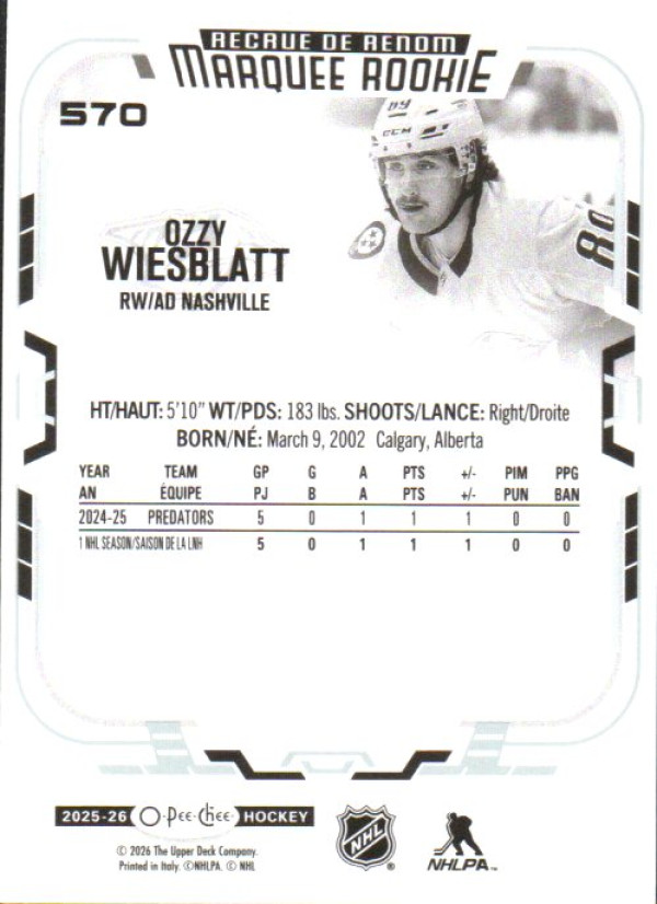 Ozzy Wiesblatt #570 – 2025-26 O-Pee-Chee Marquee Rookie