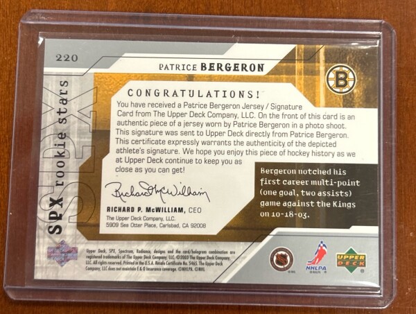 Patrice Bergeron SPX Rookie Jersey Auto 253/925