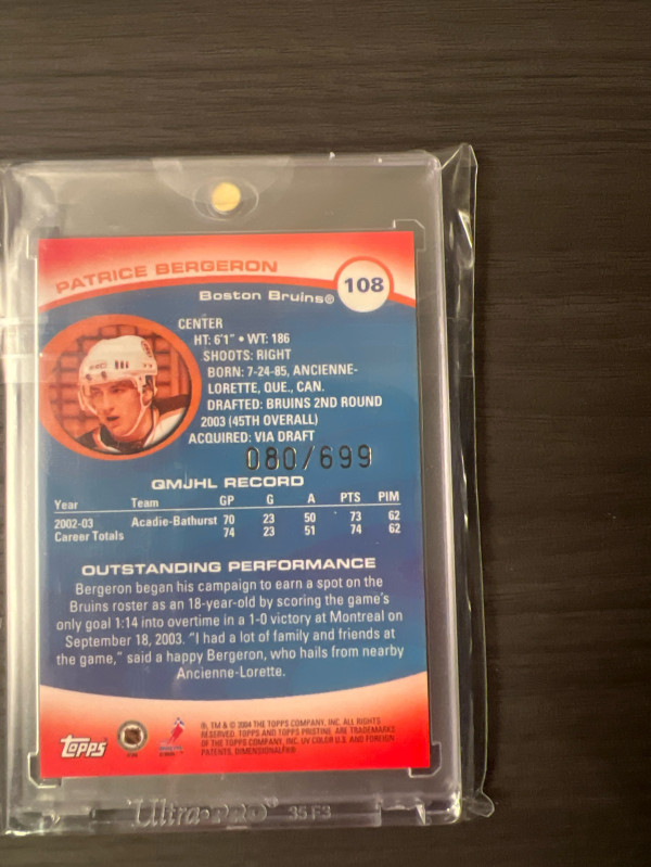 Patrice Bergeron Tops Prestige Uncommon Rookie # 080/699