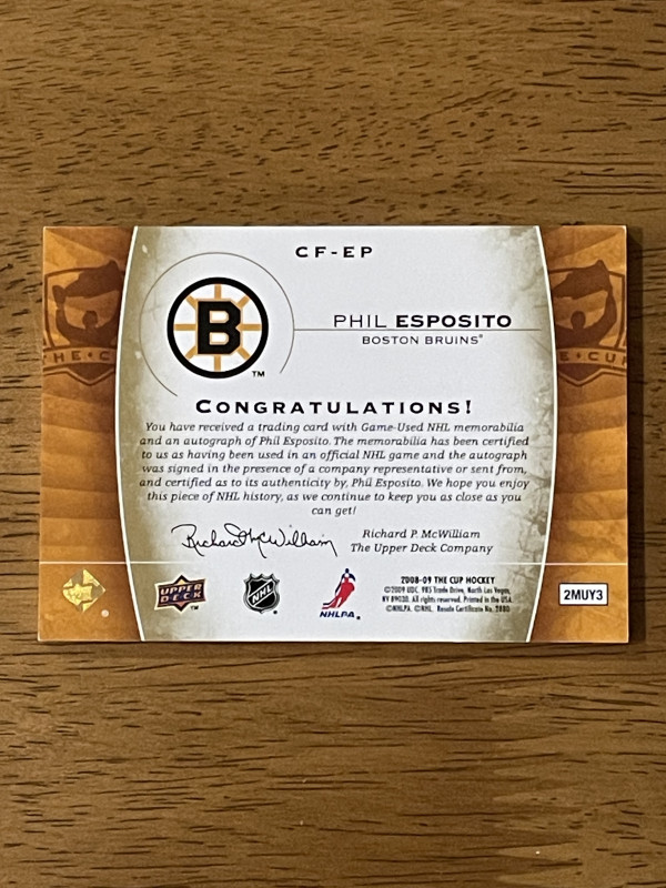 Phil Esposito 2008-09 the Cup Foundations quad jersey auto #8/10