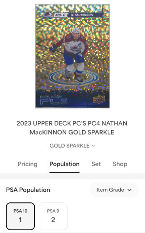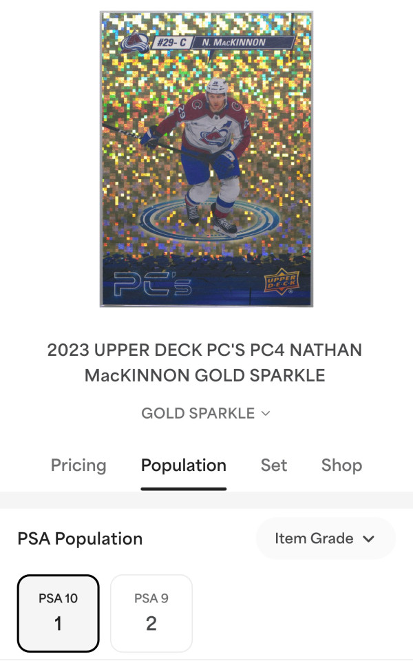 🔥🔥PSA 10 Pop 1🔥🔥2023 Upper Deck Nathan MacKinnon Gold Sparkle #PC4