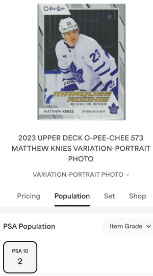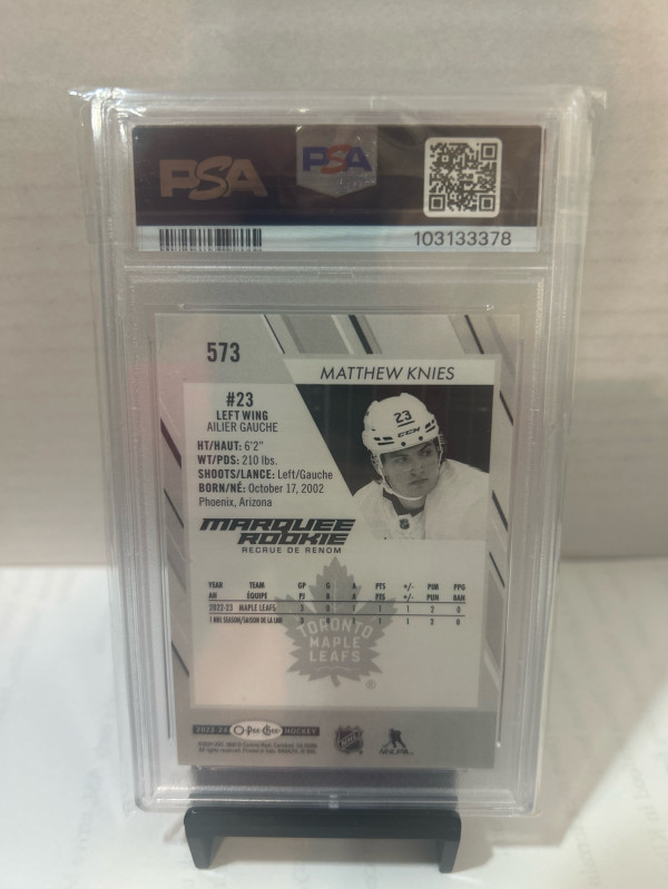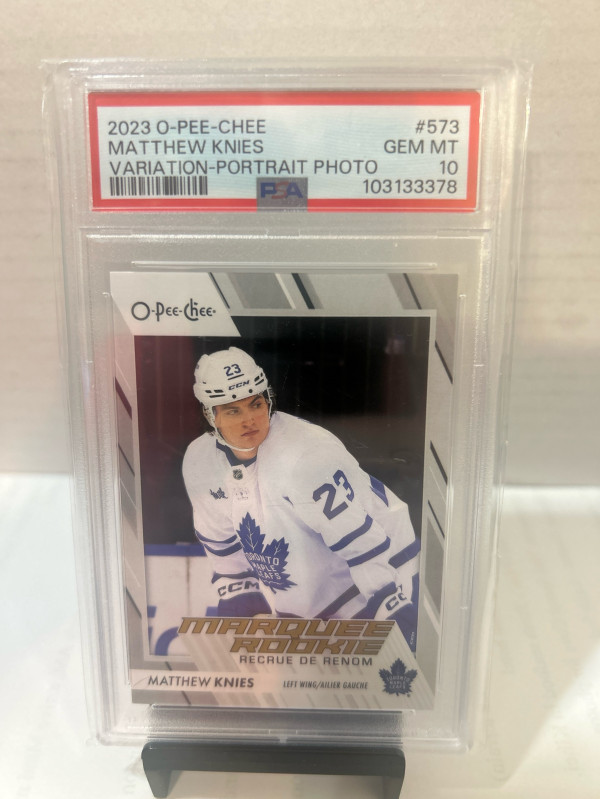 🔥PSA 10 Pop 2🔥2023-24 O-PEE-CHEE HOCKEY MATTHEW KNIES PHOTO VARIATION RC SSP #573 RARE!
