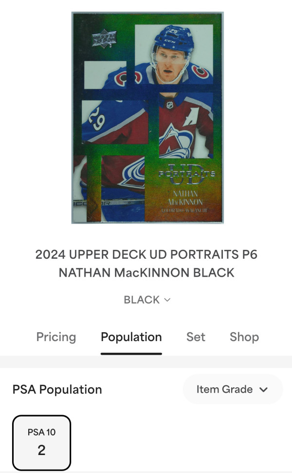 🔥PSA 10 Pop 2🔥2024 Upper Deck Nathan MacKinnon UD Portraits Black #P6