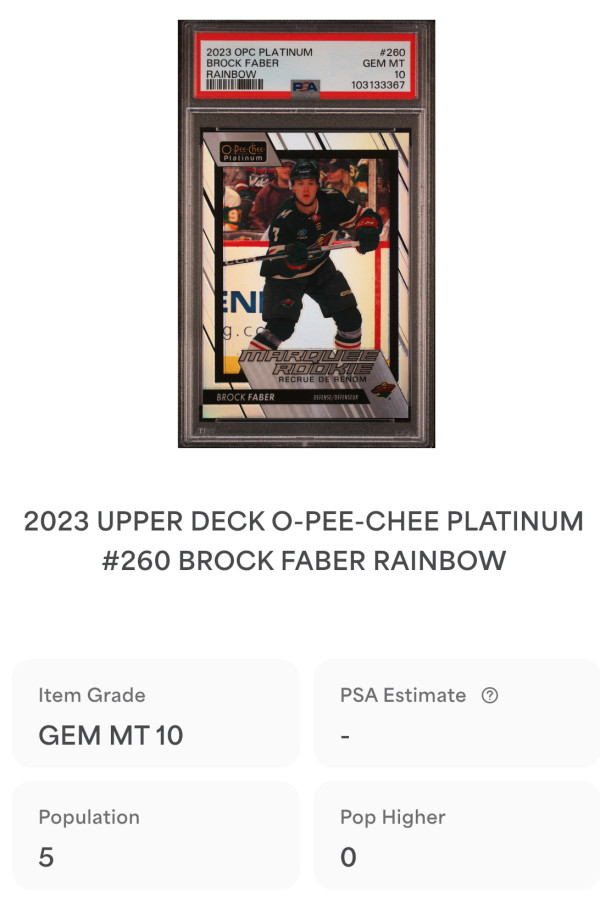 🔥PSA 10 Pop 5🔥2023 OPC Platinum Brock Faber Rainbow Rookie #260