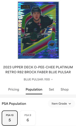 🔥PSA 10 Pop 5🔥OPC Platinum Brock Faber Retro Blue Pulsar #/100