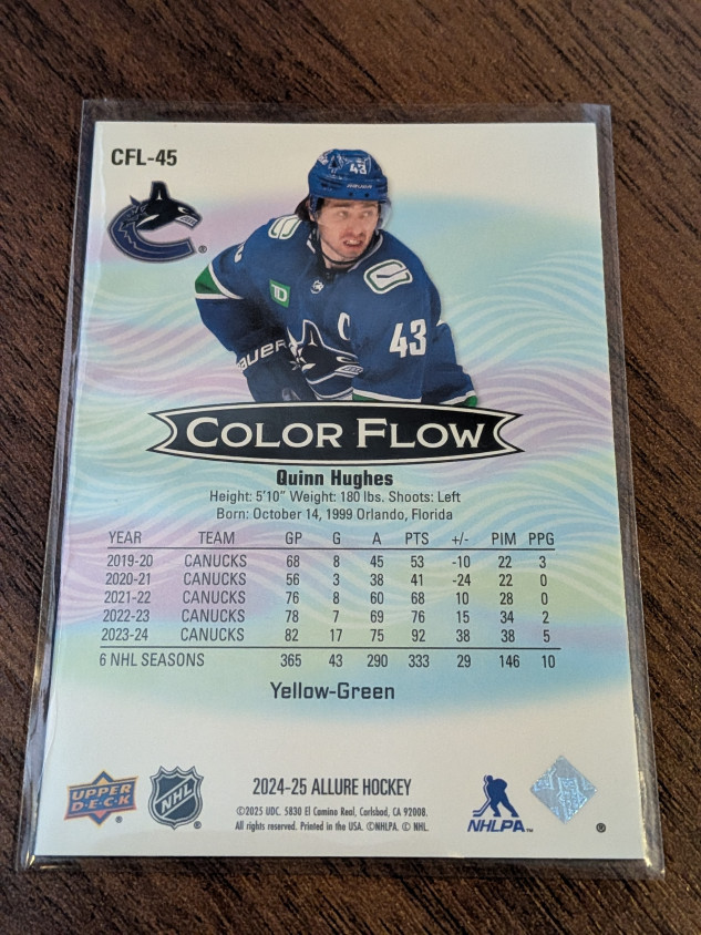 Quinn Hughes Color Flow Yellow Green Allure 2024-25