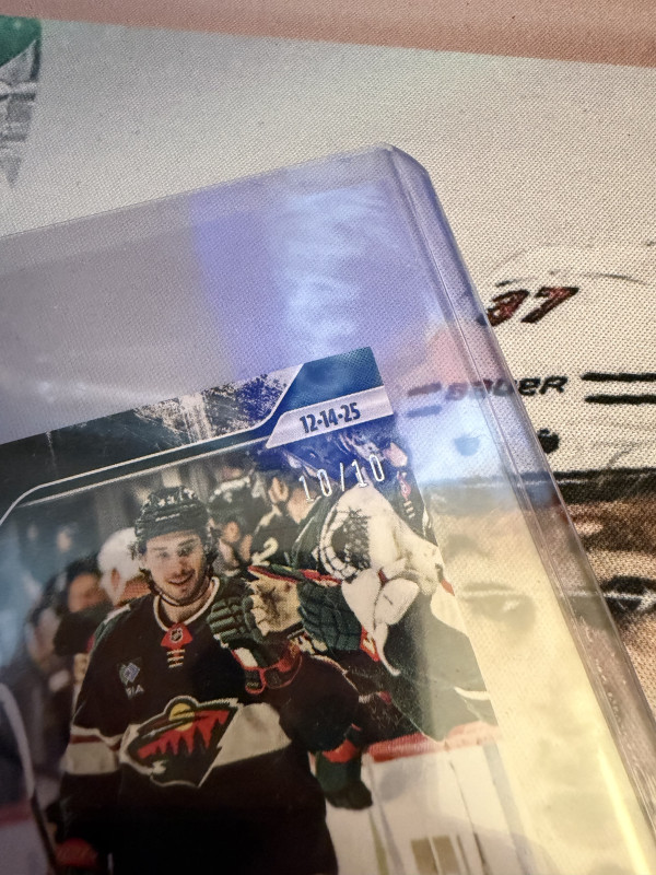 Hughes /10 "6th d-man to score in wild debut" These are a sticker. PSA will grade these.