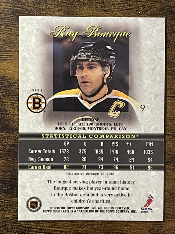 Ray Bourque 1998-99 Topps Gold Label Red class 3 #22/25