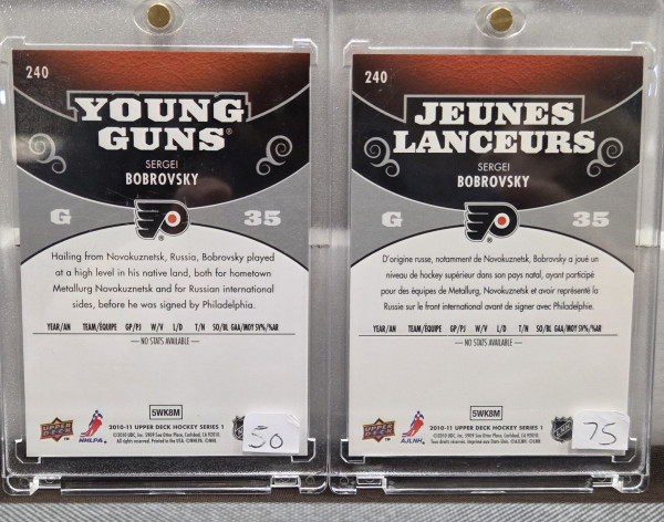 2010-11 Upper Deck Young Guns 240 Sergei Bobrovksy Regular and French variant.