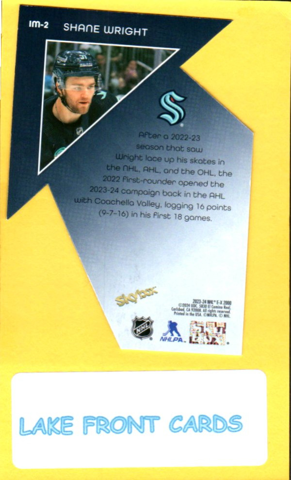 Get this awesome Shane Wright #IM-2 insert card from the stylish 2023 SkyBox E-X 2000 Index Movers set! A great addition for any Seattle Kraken collector or fan of the throwback SkyBox designs.