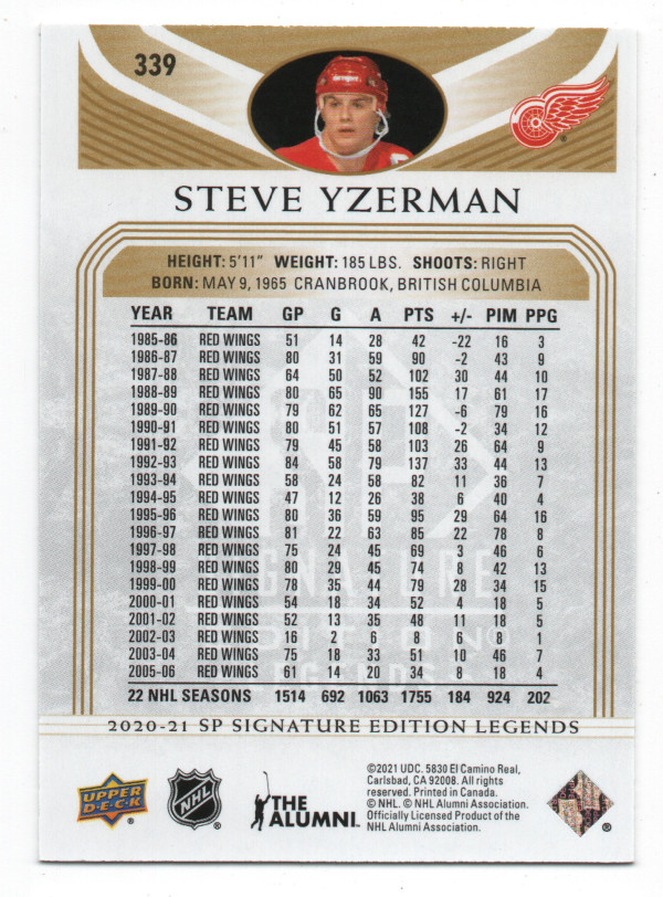 Steve Yzerman - 2020-21 Upper Deck SP Signature Edition Legends Gold Script #339 SP