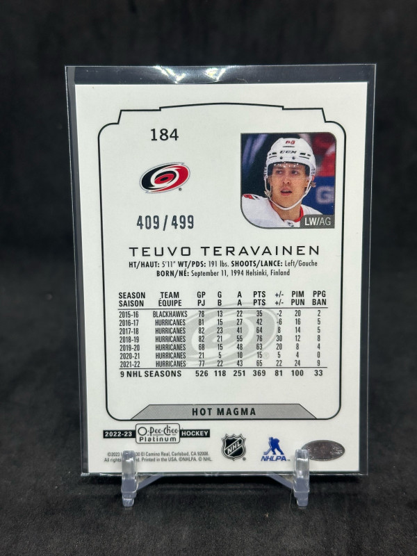 Teuvo Teravainen 2022-23 UD O-Pee-Chee Platinum Hot Magma /499 #184 Hurricanes