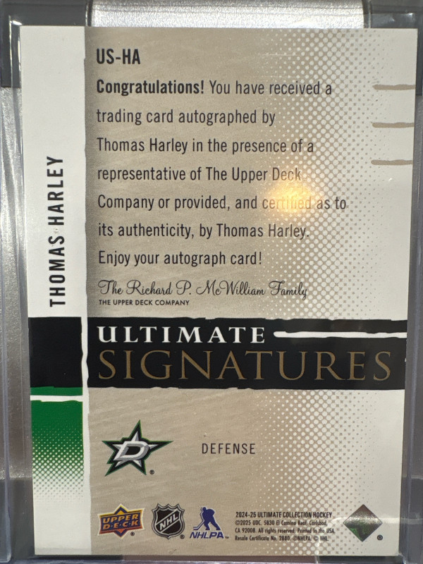 Thomas Harley 2024-25 Upper Deck Ultimate Ultimate Signstures