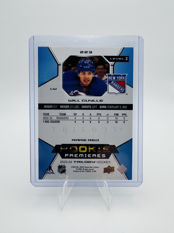 Upper Deck 2023-24 Trilogy Rare Rookies Red Will Cuylle #223 Rangers NHL 32/49