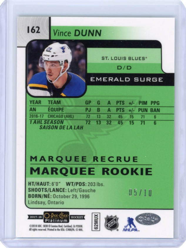 Vince Dunn O-Pee-Chee Platinum Emerald Surge /10