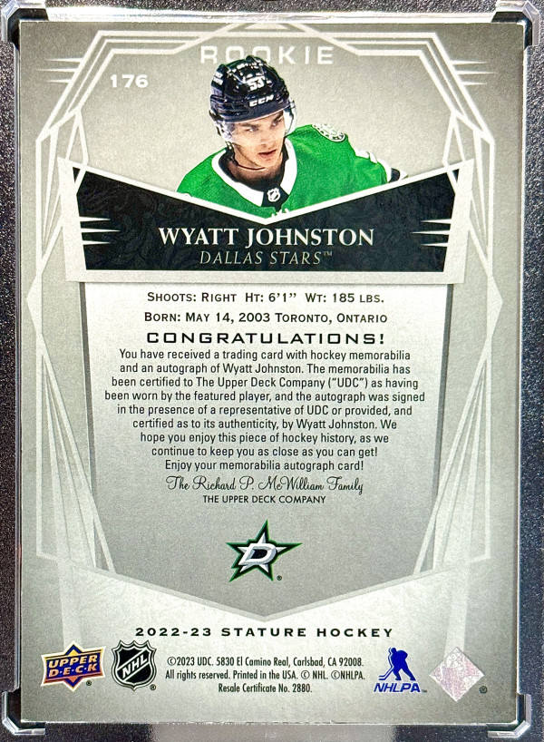 Wyatt Johnston 2022-23 Stature Portrait Rookie Patch Auto 01/20