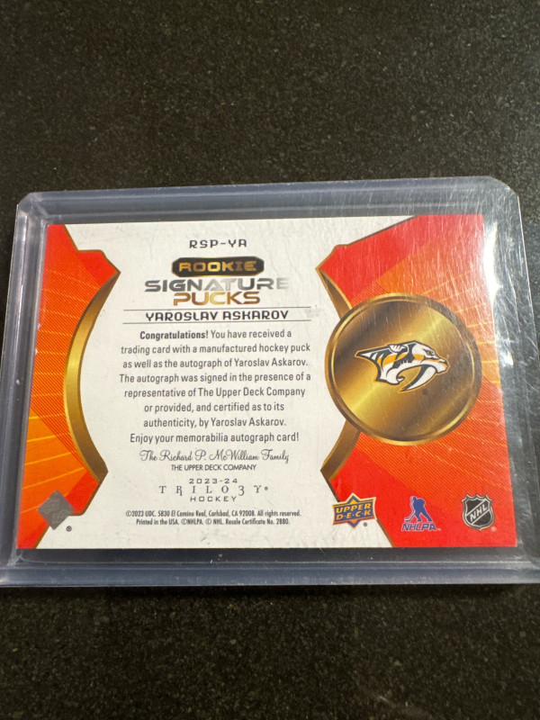 Yaroslav Askarov trilogy rookie signature pucks /24 first on print