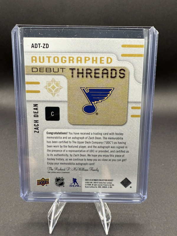 Zach Dean Ultimate /199 Rookie Patch Auto