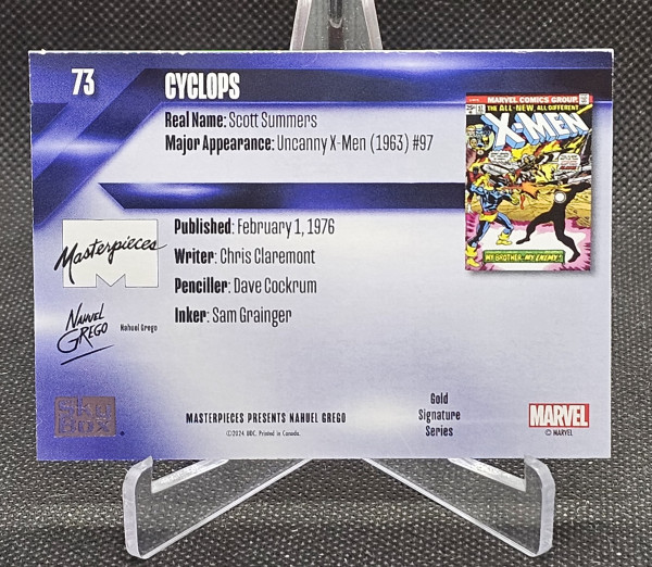 2024 SkyBox Marvel Masterpieces Presents Nahuel Grego - Gold Foil Signature Series #73 Level 3 - Cyclops