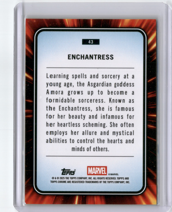 You are purchasing a 2025 TOPPS CHROME ENCHANTRESS YELLOW LAVA. You will receive the exact item in the photographs. Thank you for looking. Check our SM for news and updates 2Kingscards