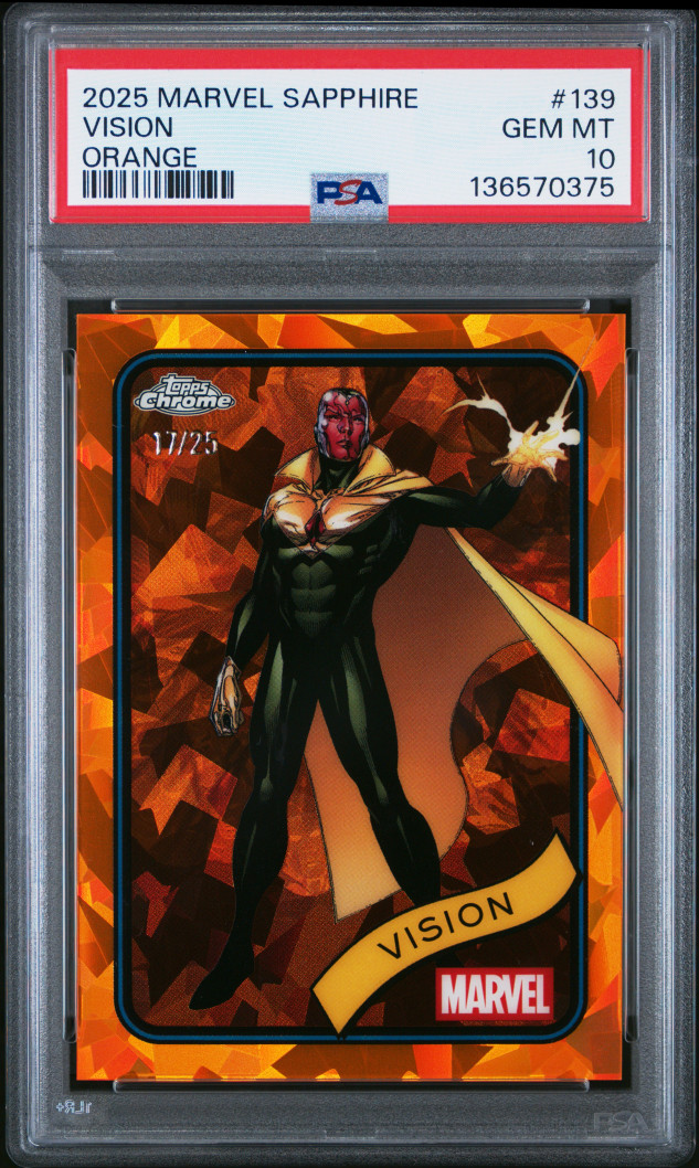 2025 Topps Chrome Marvel Sapphire Edition Vision Orange /25 PSA 10 (POP 1)