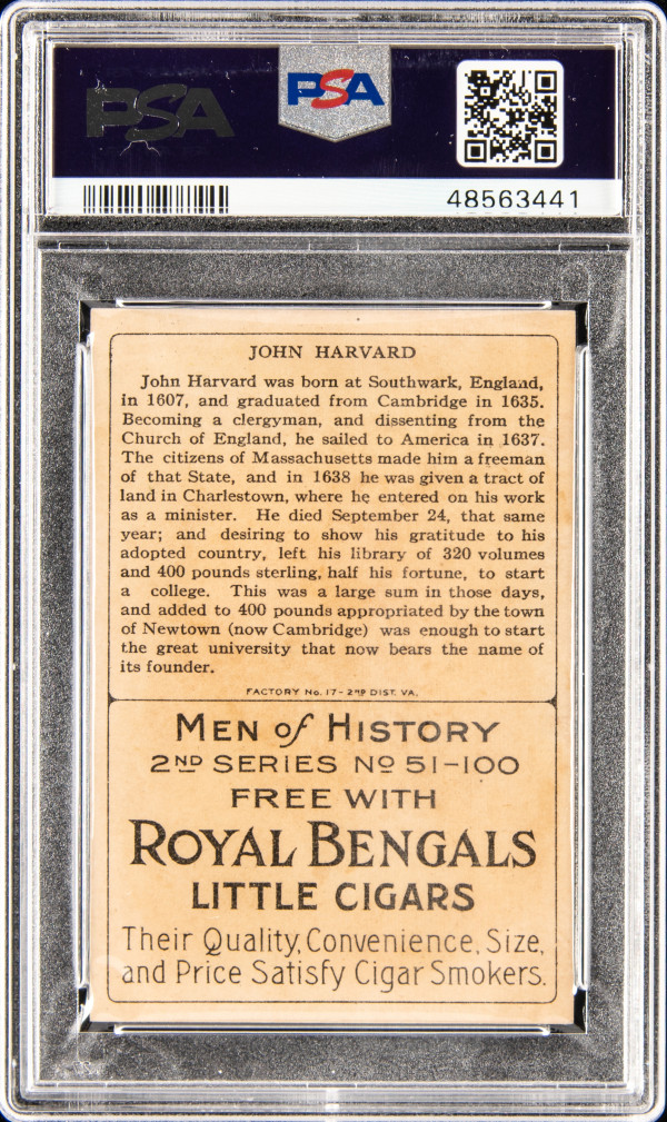 1911 T68 American Tobacco Men Of History John Harvard # PSA 6