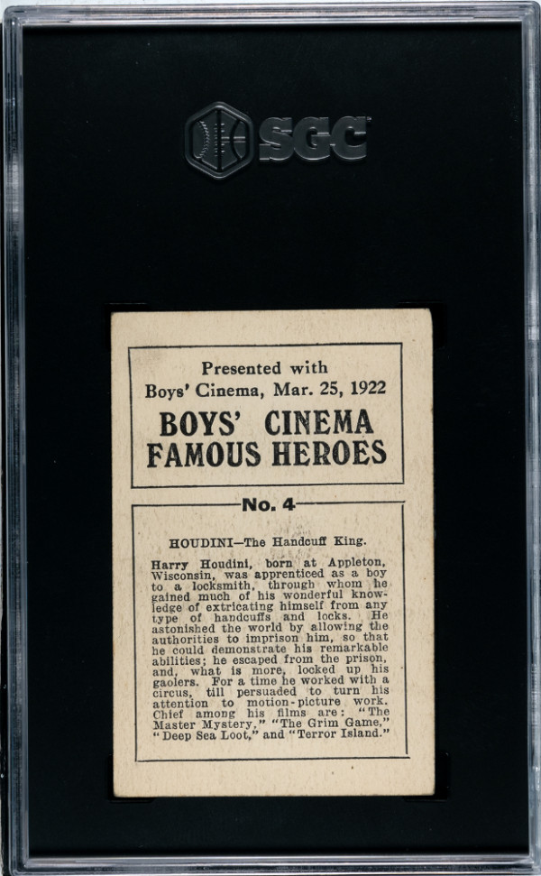 1922 Boys' Cinema Harry Houdini #4 Famous Heroes SGC 5