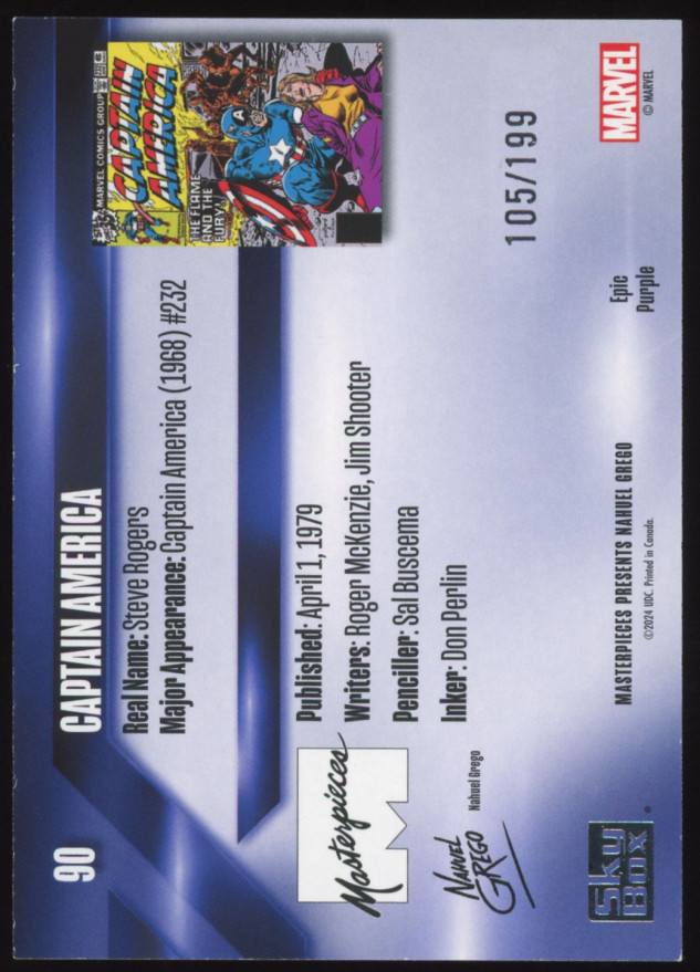 2024 Marvel Masterpieces Nahuel Grego Captain America #90 Purple 105/199