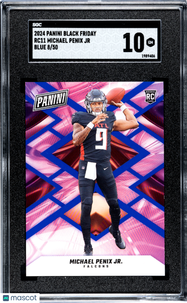 You are purchasing a 2024 Panini Black Friday Michael Penix JR #RC11 Blue Rookie /50 Atlanta Falcons SGC 10. You will receive the exact item in the photographs. Thank you for looking.