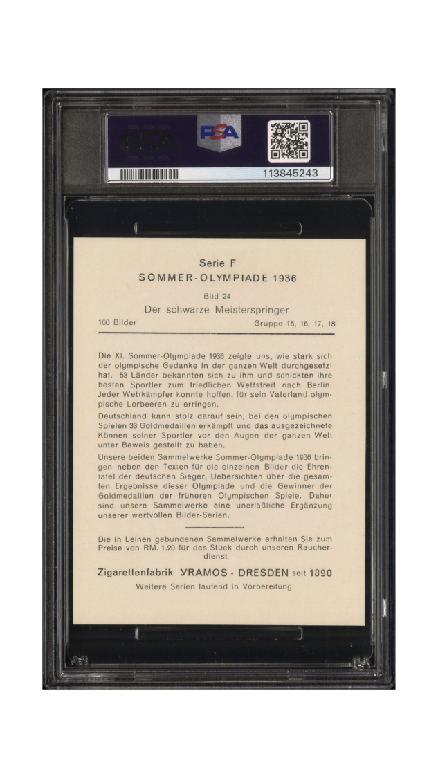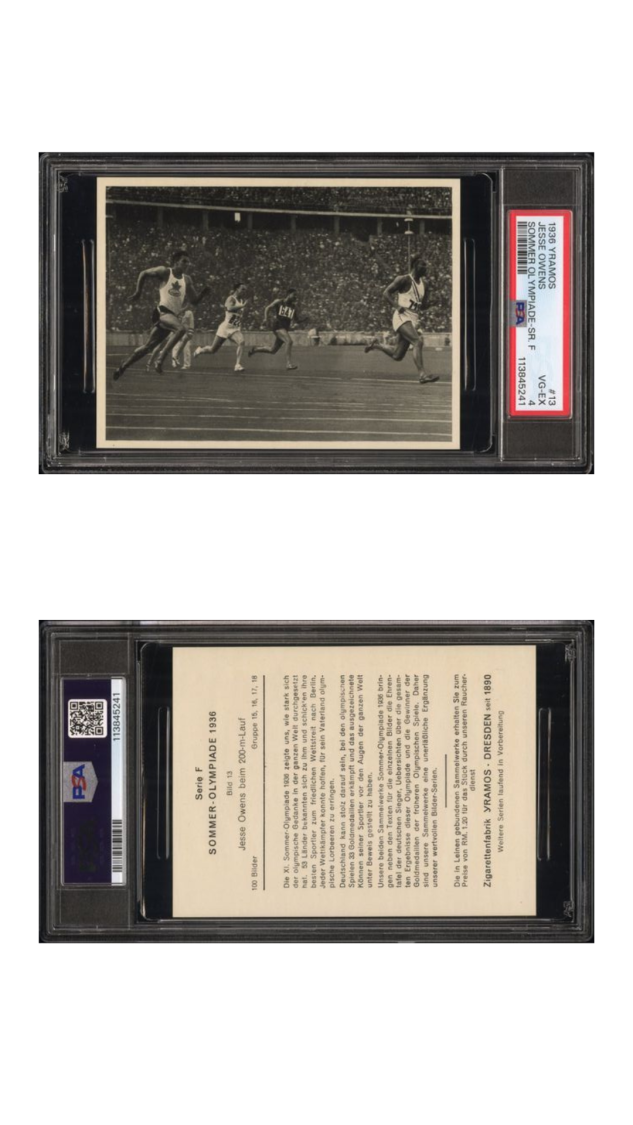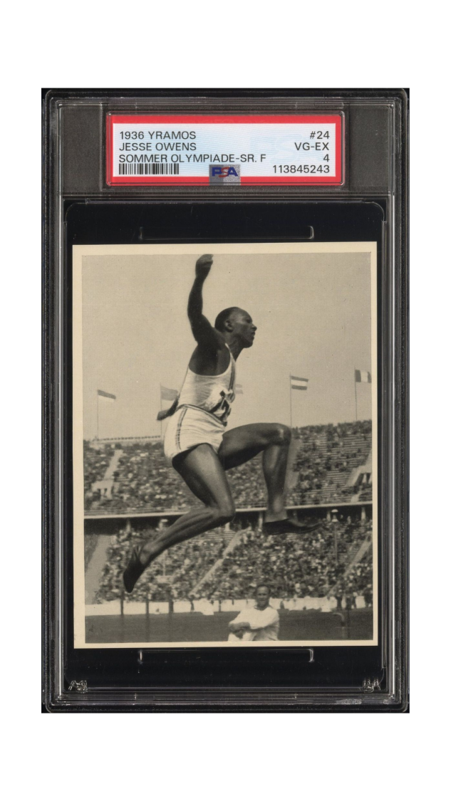 These Yramos cards are some of the rarest Jesse Owens cards from his historic 1936 Olympics games, with very low pops at PSA and they are graded very highly for this particular card set. See info for each particular card below.