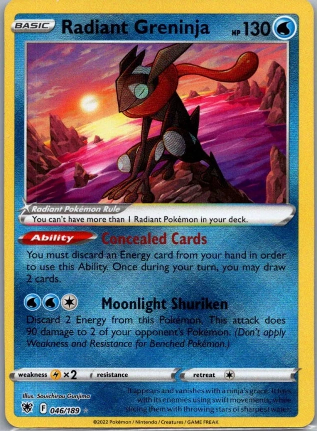 This is a nice example of a SWSH10: Astral Radiance #046/189 Radiant Greninja