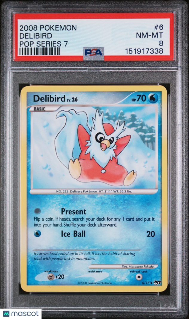 You are purchasing a 2008 Pokemon Pop Series 7 Delibird Pop Series 7 PSA 8 #6. You will receive the exact item in the photographs. Thank you for looking.