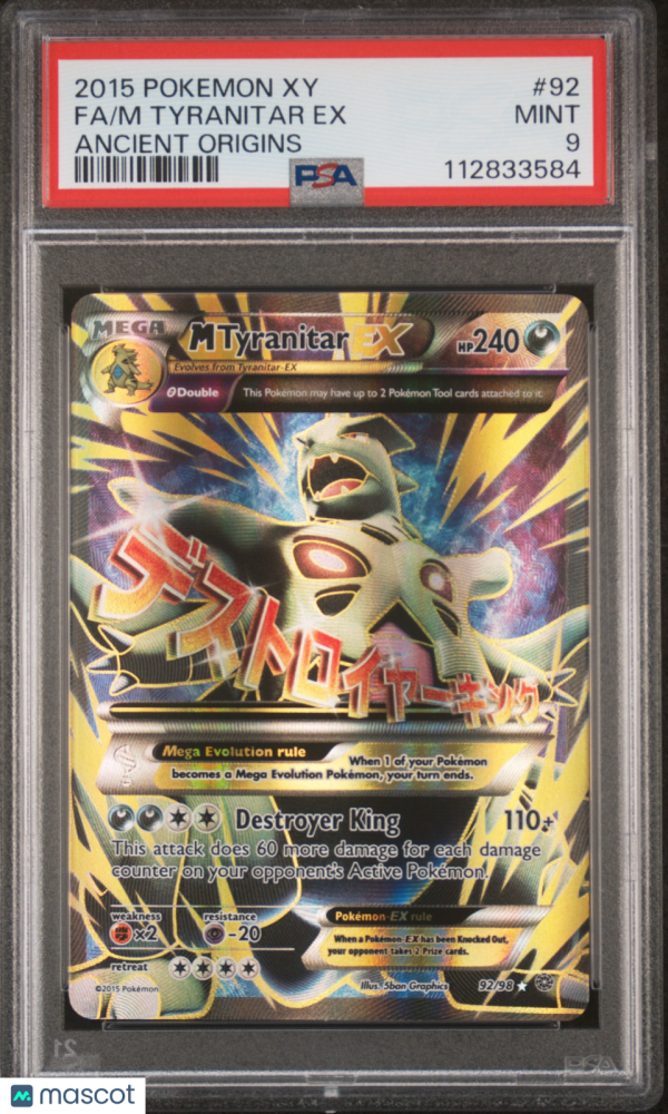 You are purchasing a 2015 Pokemon Xy Ancient Origins M Tyranitar EX Fa Ancient Origins PSA 9 #92. You will receive the exact item in the photographs. Thank you for looking.