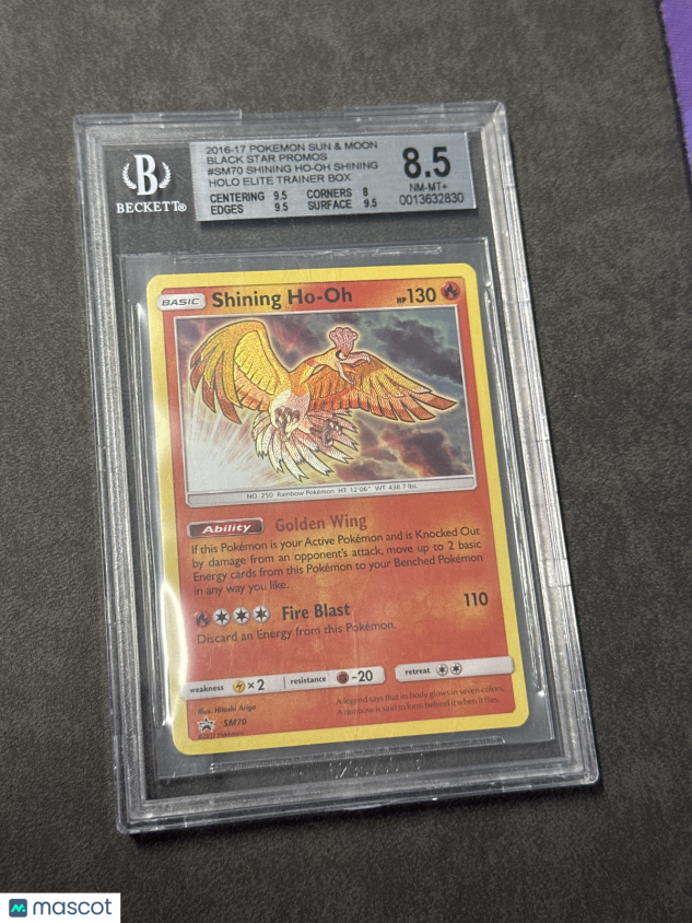 You are purchasing a 2016 Pokemon Sun and Moon Black Star Promos Shining Ho-Oh Shining Holo Elite Trainer Box #SM70 BGS 8.5. You will receive the exact item in the photographs. Thank you for looking.