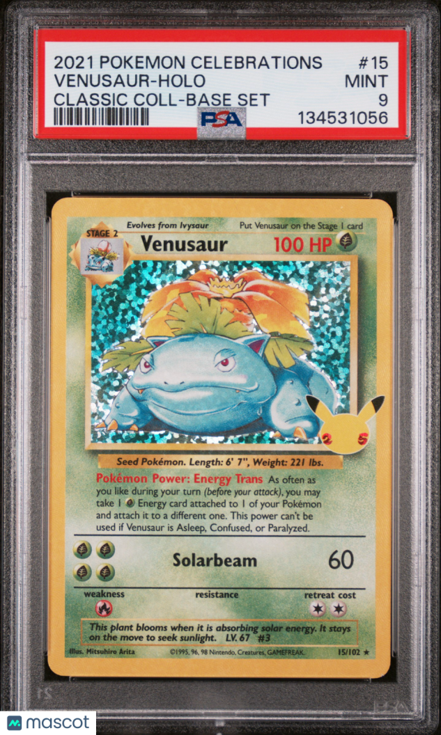 You are purchasing a 2021 Pokemon Celebrations Classic Collection Venusaur #15 Holo PSA 9. You will receive the exact item in the photographs. Thank you for looking.