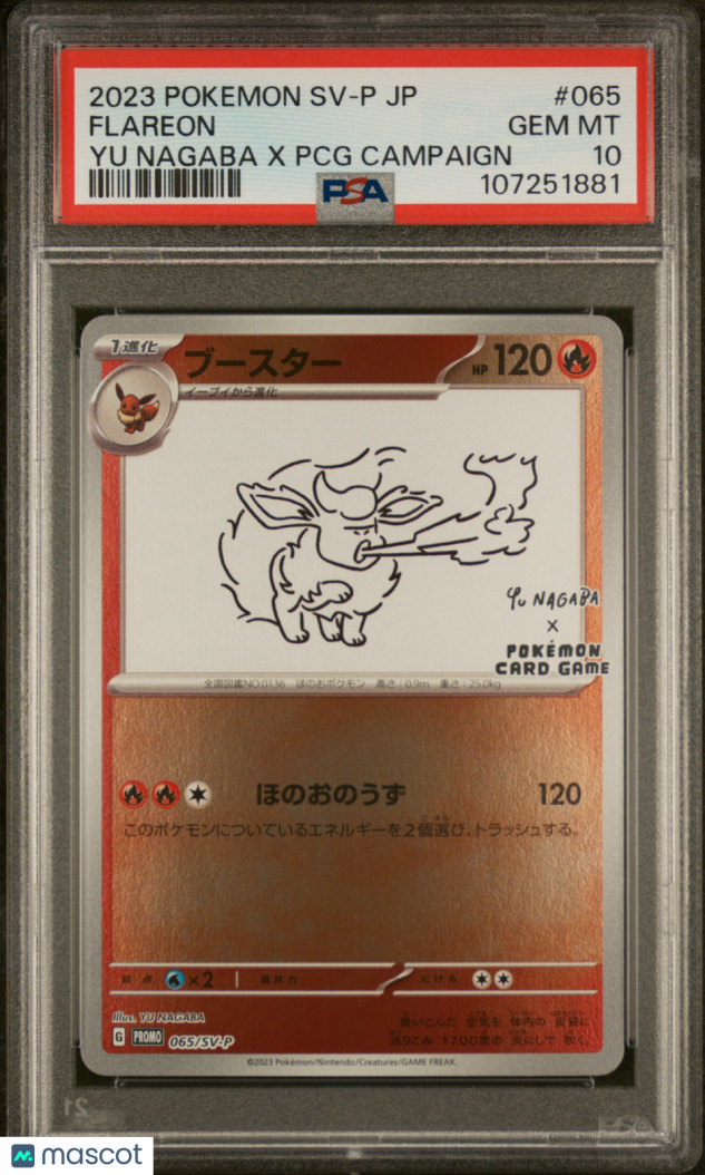 You are purchasing a 2023 Pokemon Japanese SV-P Promo Flareon Japanese Yu Nagaba X PCG Campaign PSA 10 #065. You will receive the exact item in the photographs. Thank you for looking.