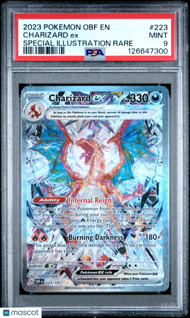 You are purchasing a 2023 Pokemon Obf EN-Obsidian Flames Charizard EX Special Illustration Rare PSA 9 #223. You will receive the exact item in the photographs. Thank you for looking.