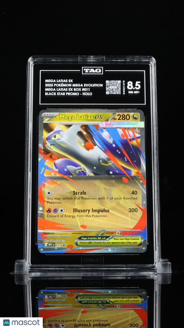 Don’t miss your chance to own this highly sought-after 2025 Pokémon Mega Latias ex Black Star Promo, graded an impressive 8.5 by Technical Authentication & Grading (TAG)! This stunning card, featuring the powerful Mega Latias ex from the exclusive Mega Evolution Black Star Promos set, is a must-have for serious collectors and Pokémon fans alike.