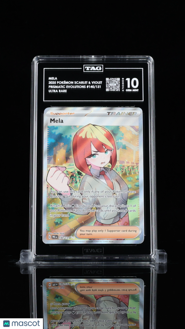 Certified with TAG and boasting a unique certification number (X7038639), this Mela card (#140/131) is guaranteed authentic and preserved in top-tier quality. Secure this incredible collectible today and elevate your Pokémon TCG lineup with one of the best cards from the Scarlet & Violet set!