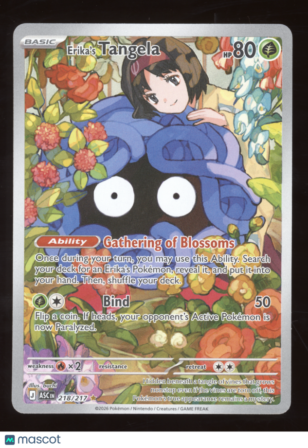 You are purchasing a 2026 Pokemon Mega Evolution Ascended Heroes Erika's Tangela Secret Rare #218/217. You will receive the exact item in the photographs. Thank you for looking.