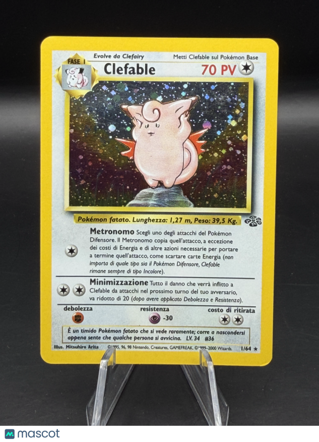 You are purchasing a Pokemon 1999 Jungle Clefable Rare #1/64 - Moderately Played (Very Good). You will receive the exact item in the photographs. Thank you for looking.(Cards with multiple quantities under $20 each, will be the same condition, but not necessarily the exact same copy of the card.)