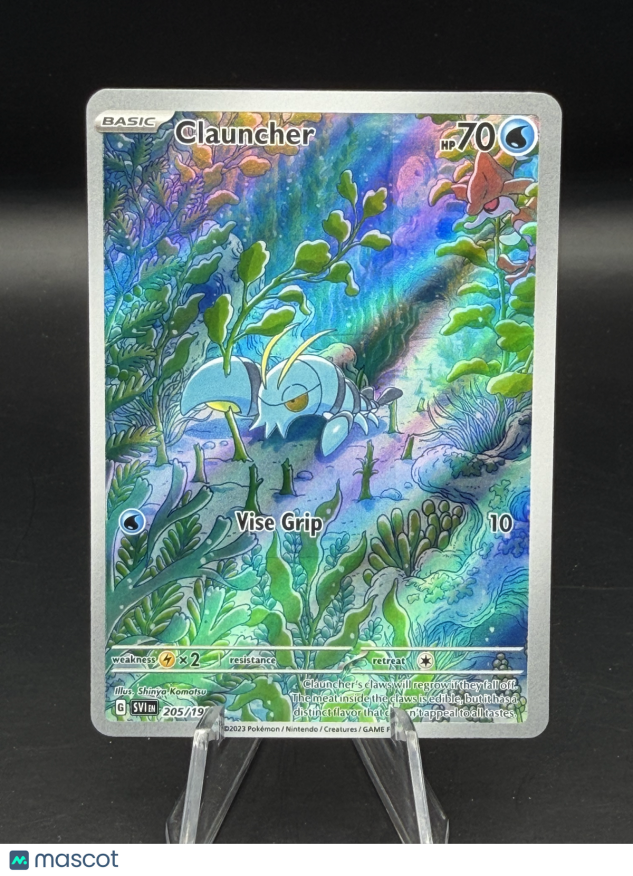 You are purchasing a Pokemon 2023 Scarlet & Violet Clauncher Illustration Rare #205/198 -. You will receive the exact item in the photographs. Thank you for looking.(Cards with multiple quantities under $20 each, will be the same condition, but not necessarily the exact same copy of the card.)